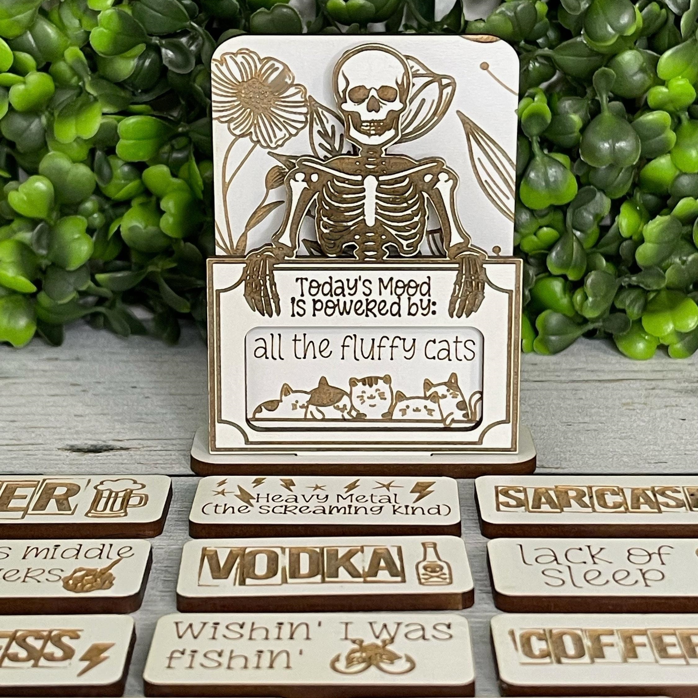 😊This skull is more than just a decoration; it's the humor generator for your emotions! By changing the wooden signs, you can adjust your "emotional battery," making each day full of fun and surprises!😊